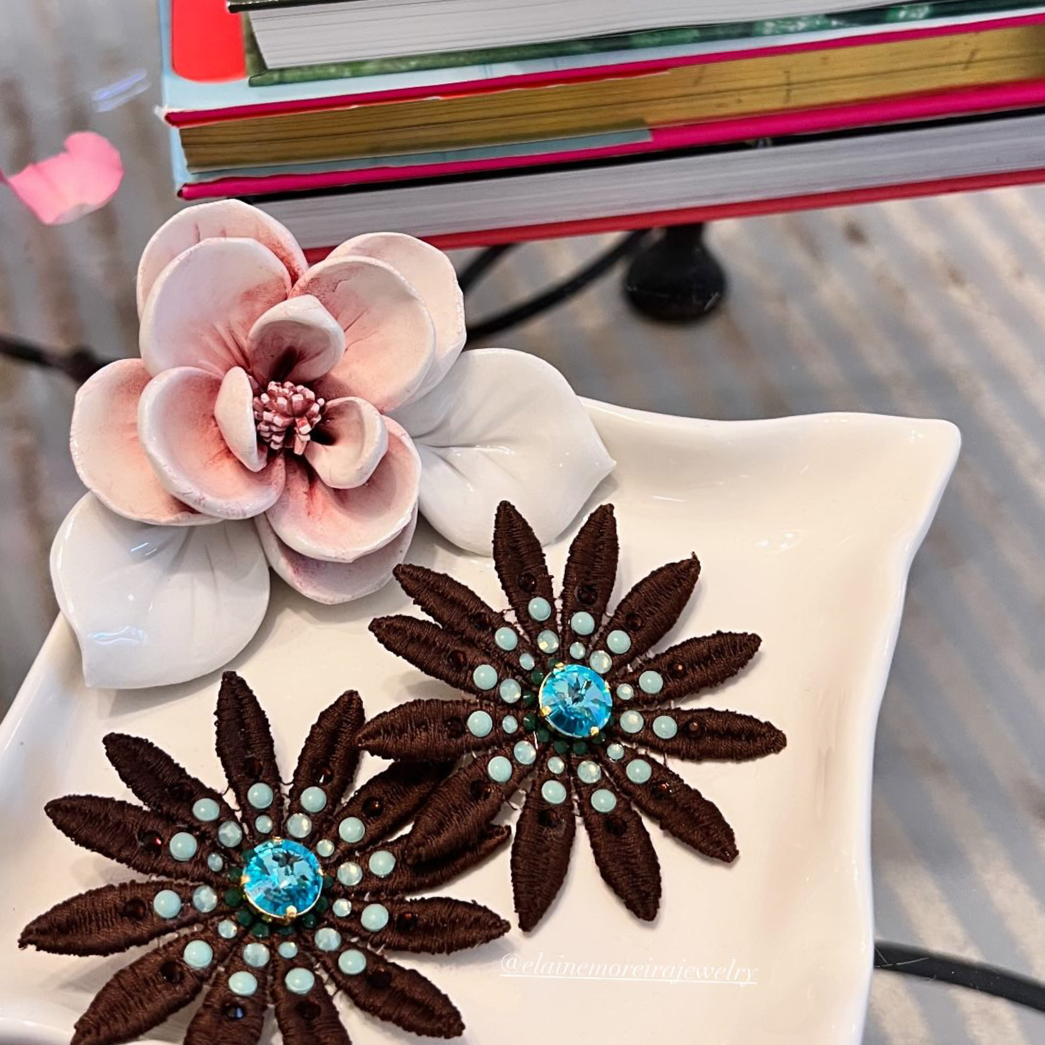 *pintada a mano y y sus cristales colocados uno a uno meticulosamente para dar ese toque delicado a la pieza.
