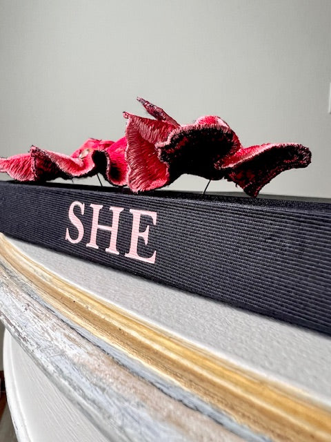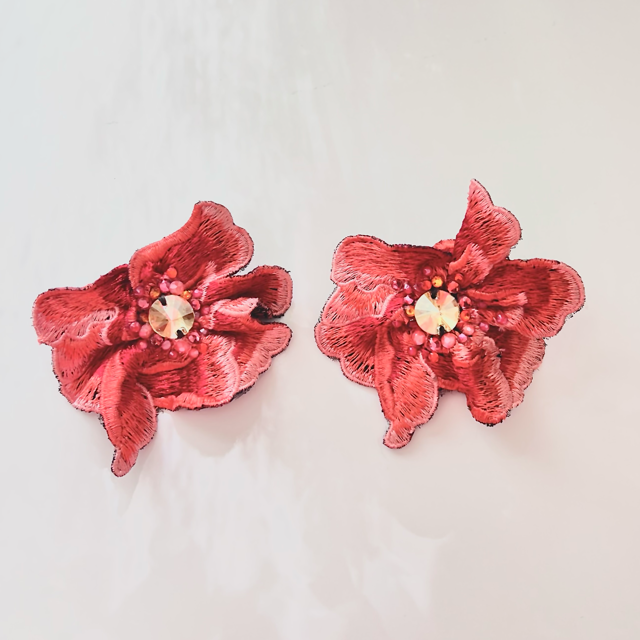 Hermosa flor coral con su centro salpicado de cristales originales en gamas de verde, trabajado a mano en nuestro taller en PR