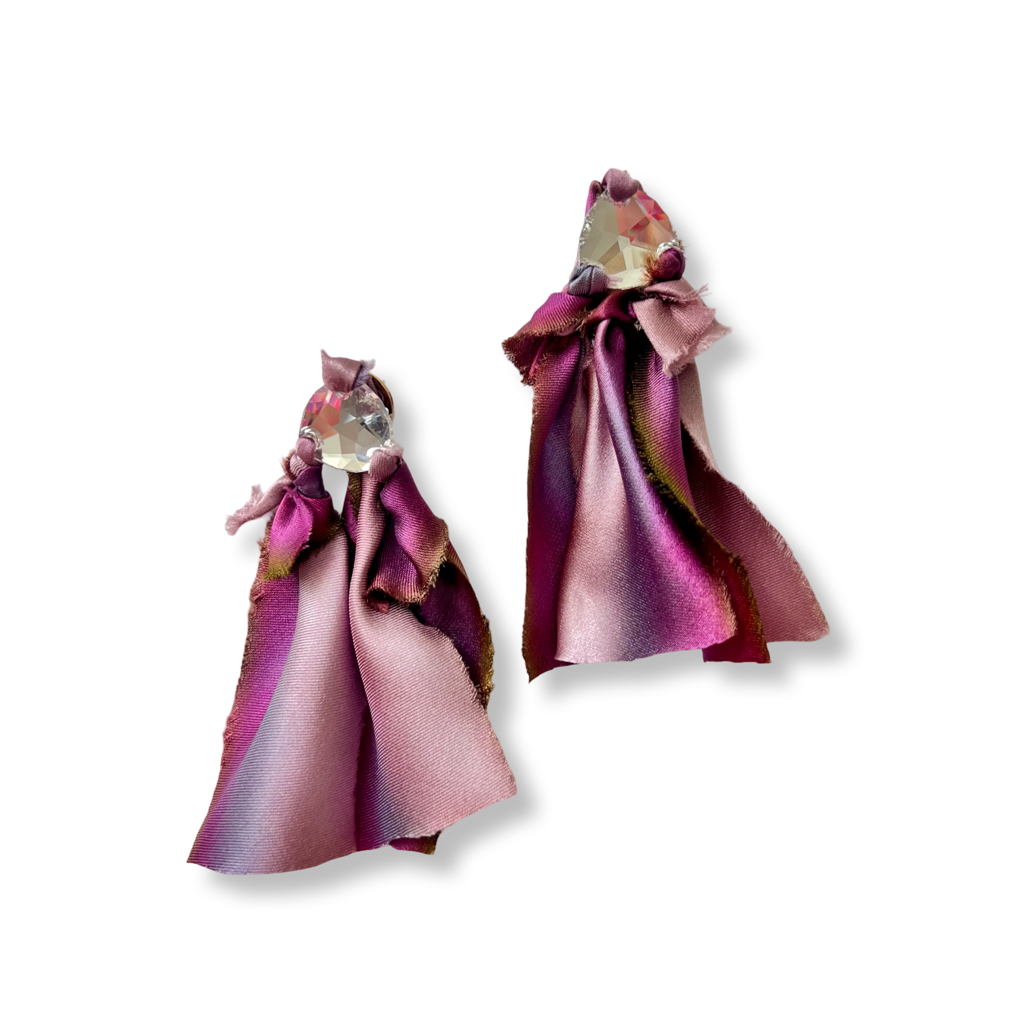 *Cintas en seda pintadas a mano atadas a un resplandeciente cristal genuino triangular,glamorosas,únicas y divertidas!