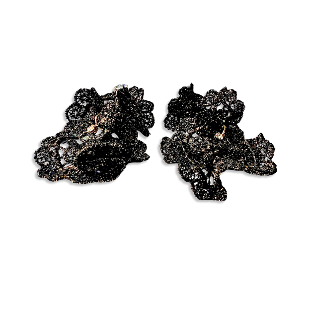 Aretes en guipure negro y tejido dorado metálico , cristales originales