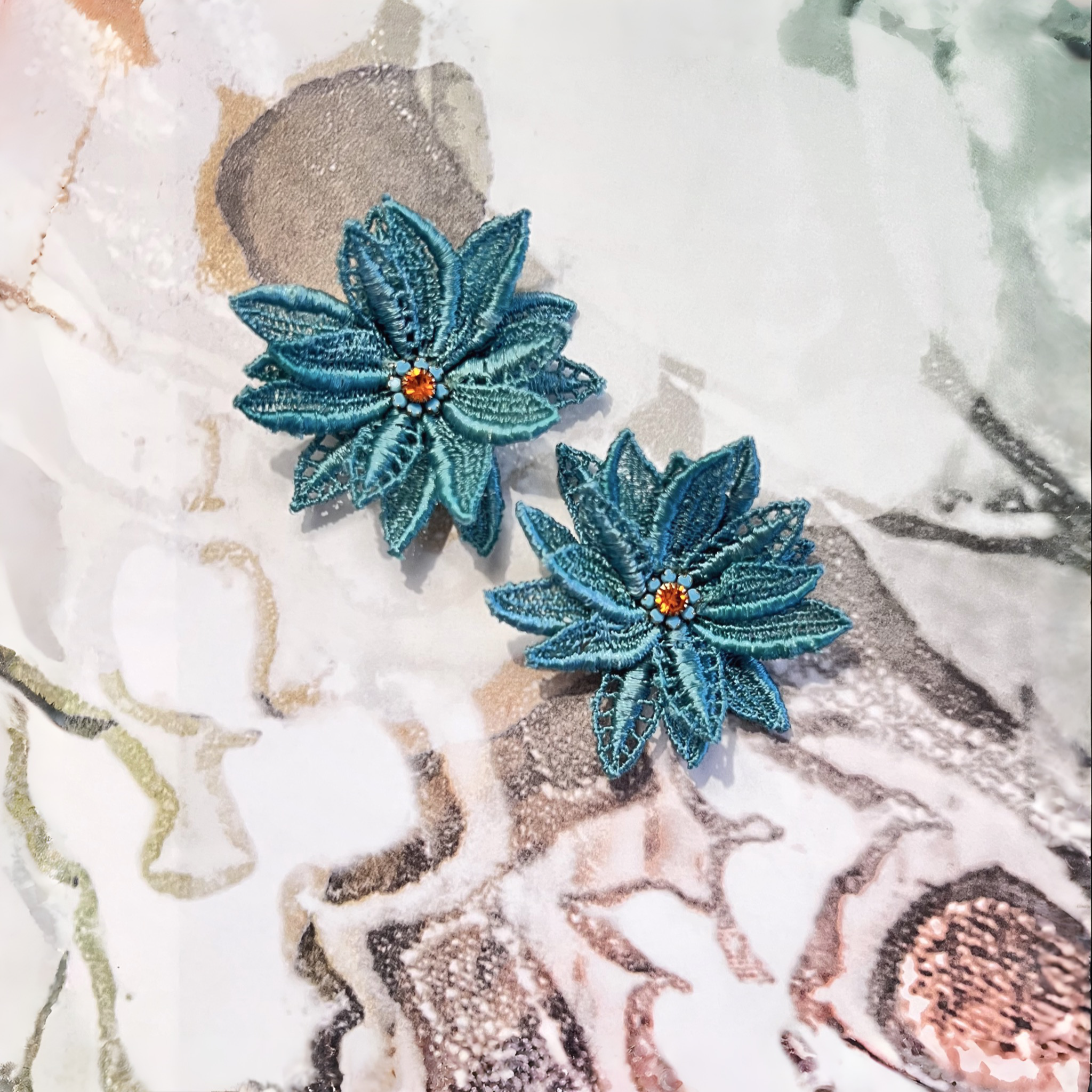 • Centro en cristal original en tonos turquesa y naranja